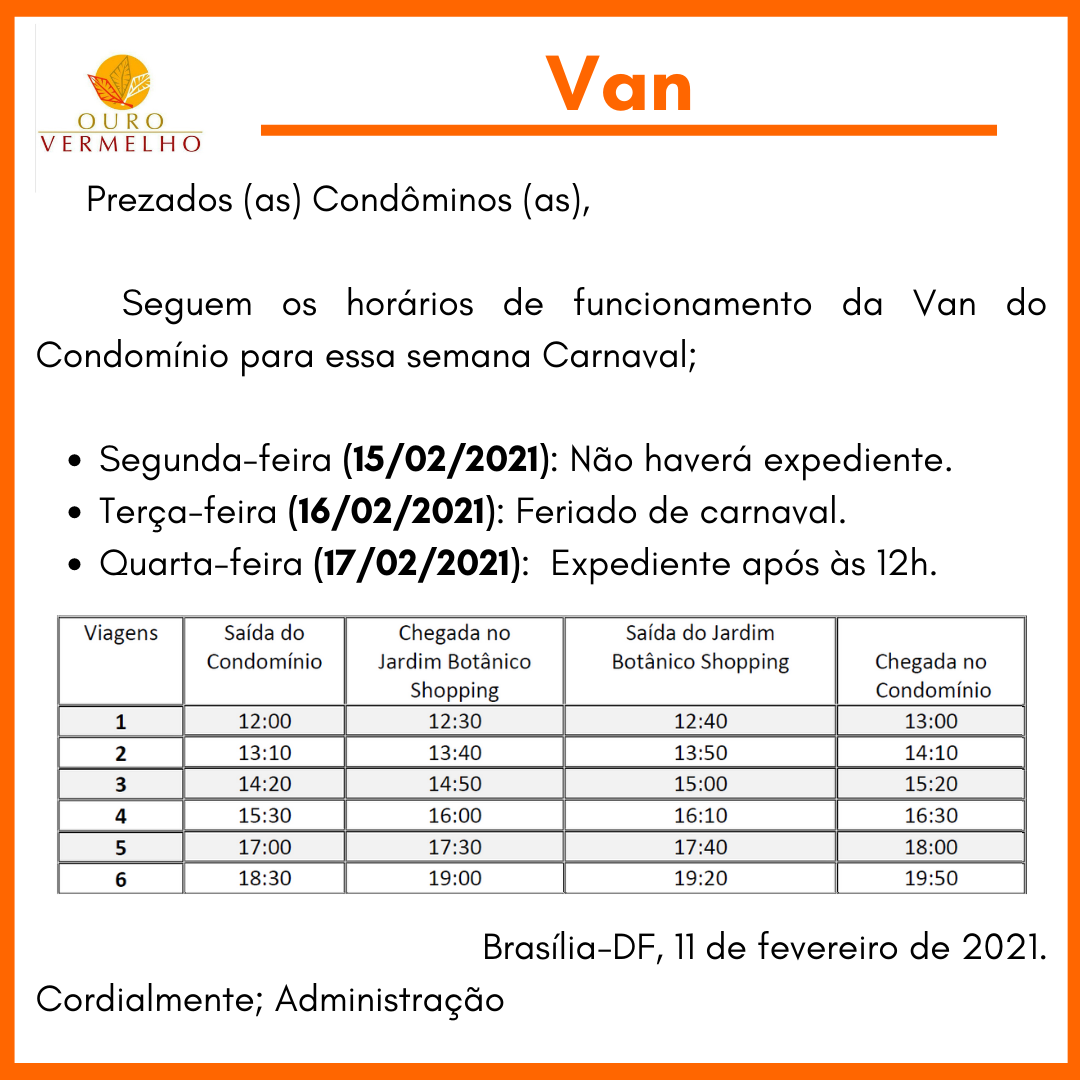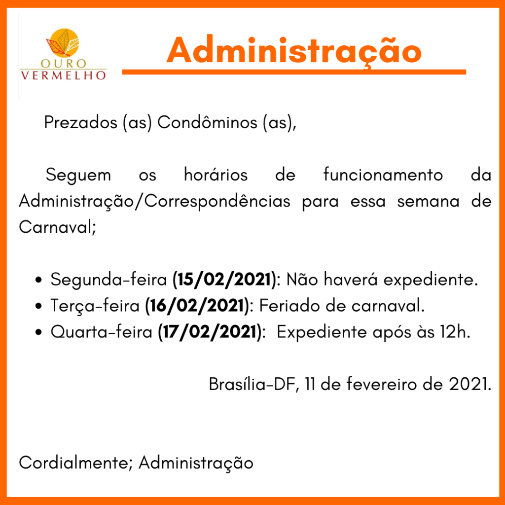 Veja como fica os horários nessa semana de carnaval!